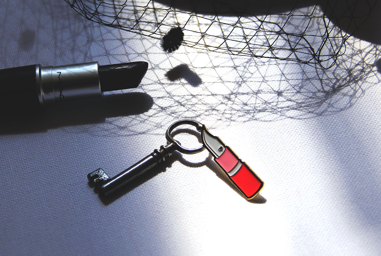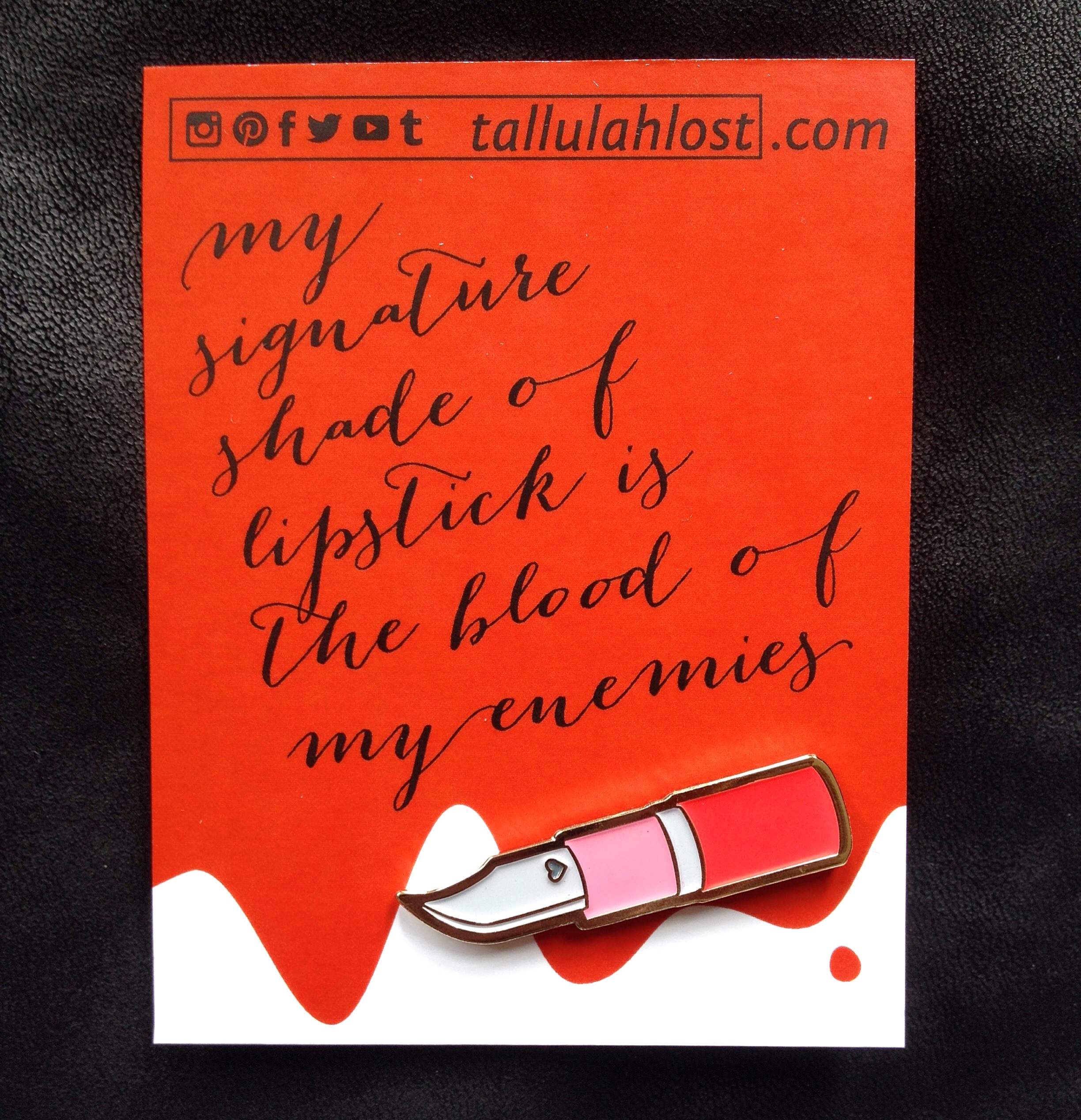 Upgrade your moto jacket with this 1.5" high lipstick knife pin.